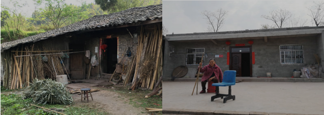 潼南区上和镇冬冲社区4组贫困户何建明去年11月搬进新家。上图为改造前(左)、改造后(右)现场照片。